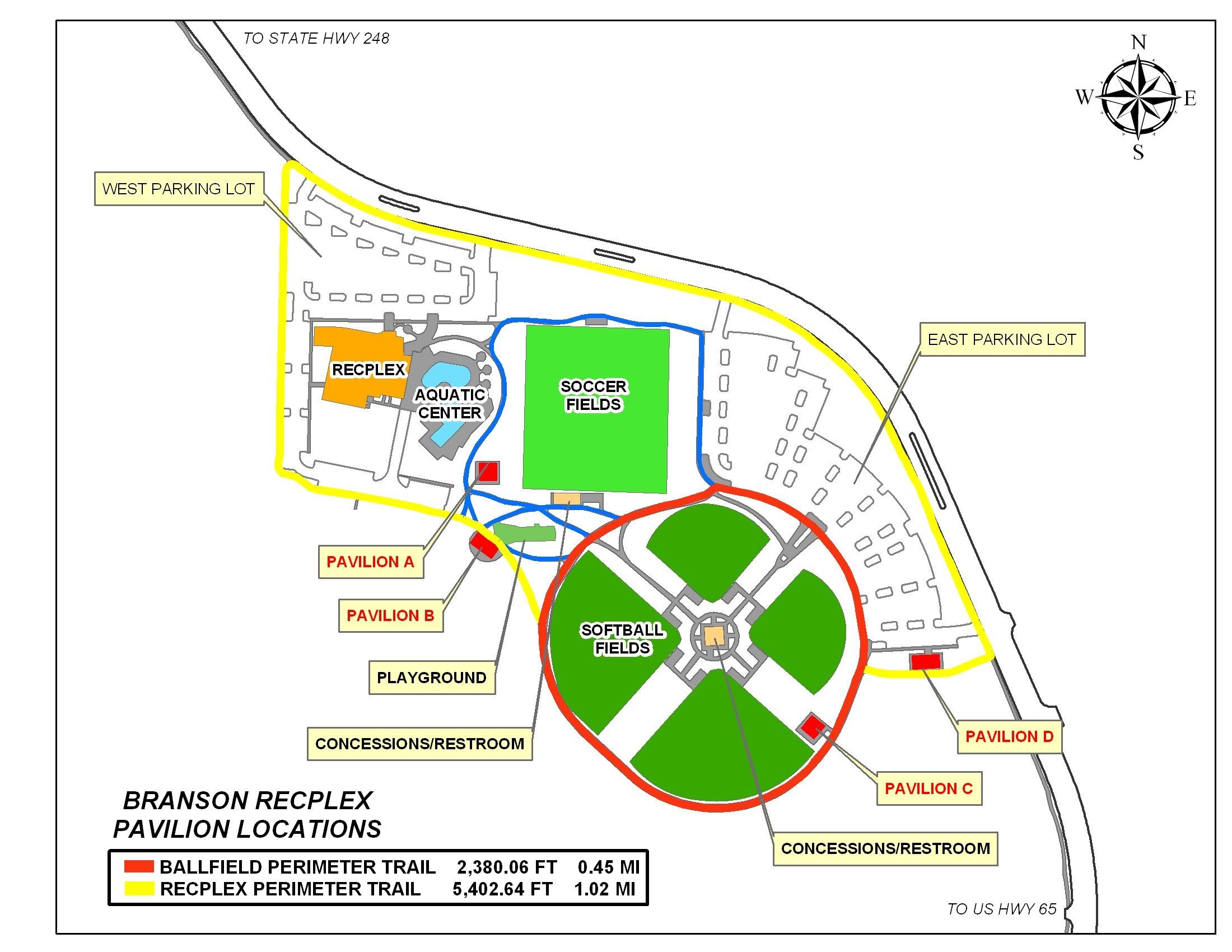 Branson RecPlex is a 35-acre recreation complex featuring a 44,000 square-foot recreation center with gymnasiums, a fitness center, an indoor track, locker rooms, community rooms, a party room, and concessions. Outside the recreation center, a 12,000 square foot aquatics center features a zero-depth entry leisure pool, water slides, lap lanes, a diving well, and shaded picnic areas. Other outdoor facilities will include a turf ballfield complex, soccer fields, four pavilions, a walking trail, and two playgrounds.